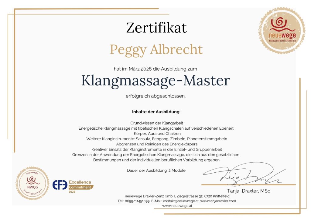 Die Klangschalenmassage ersetzt keine ärztliche oder therapeutische Behandlung.